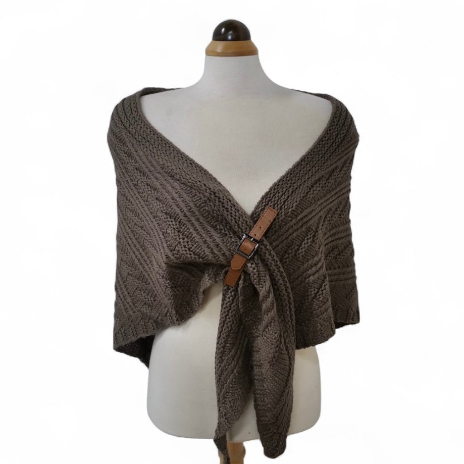 This one's a keeper! Stand out from the crowd with this stylish Aluma Knit Cape With Buckle. A must-have fashion accessory, this cape is sure to turn heads and add a touch of drama to your look. Unbuckle and adventure!