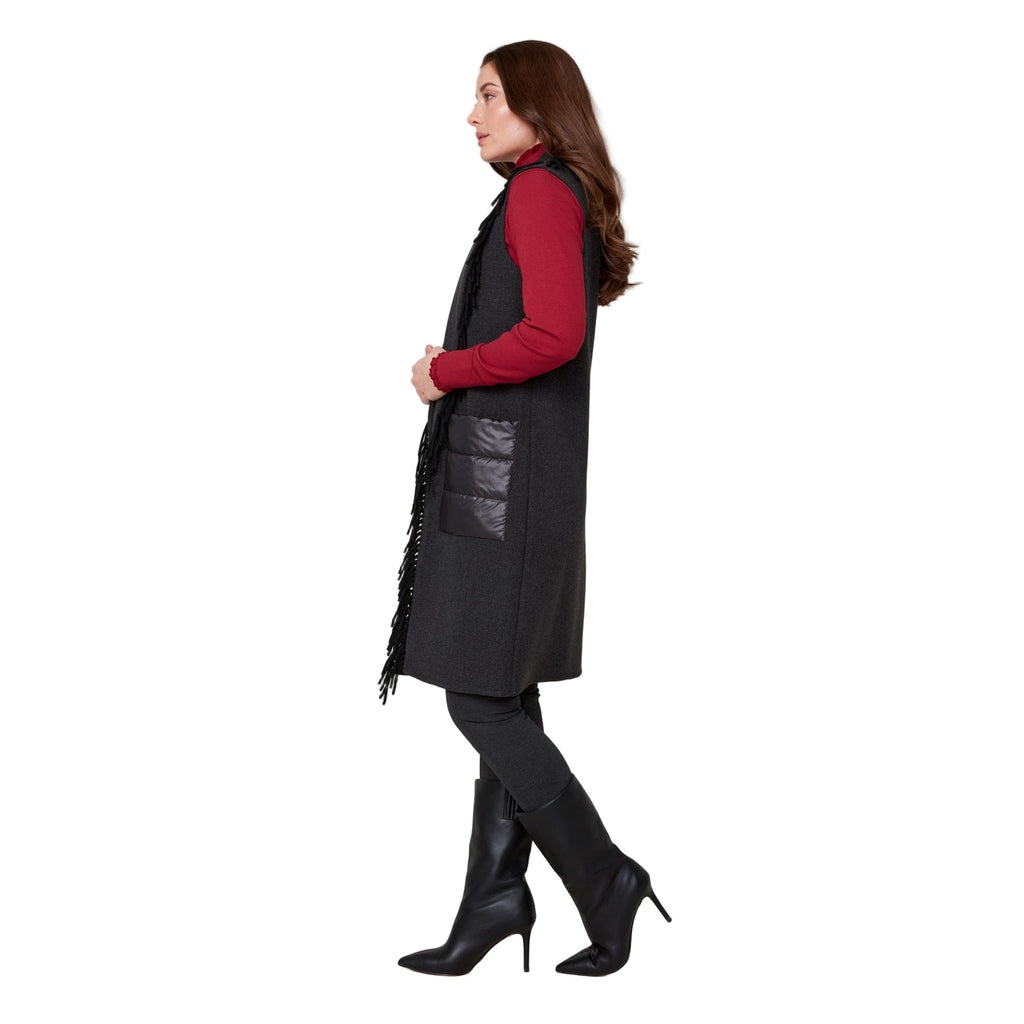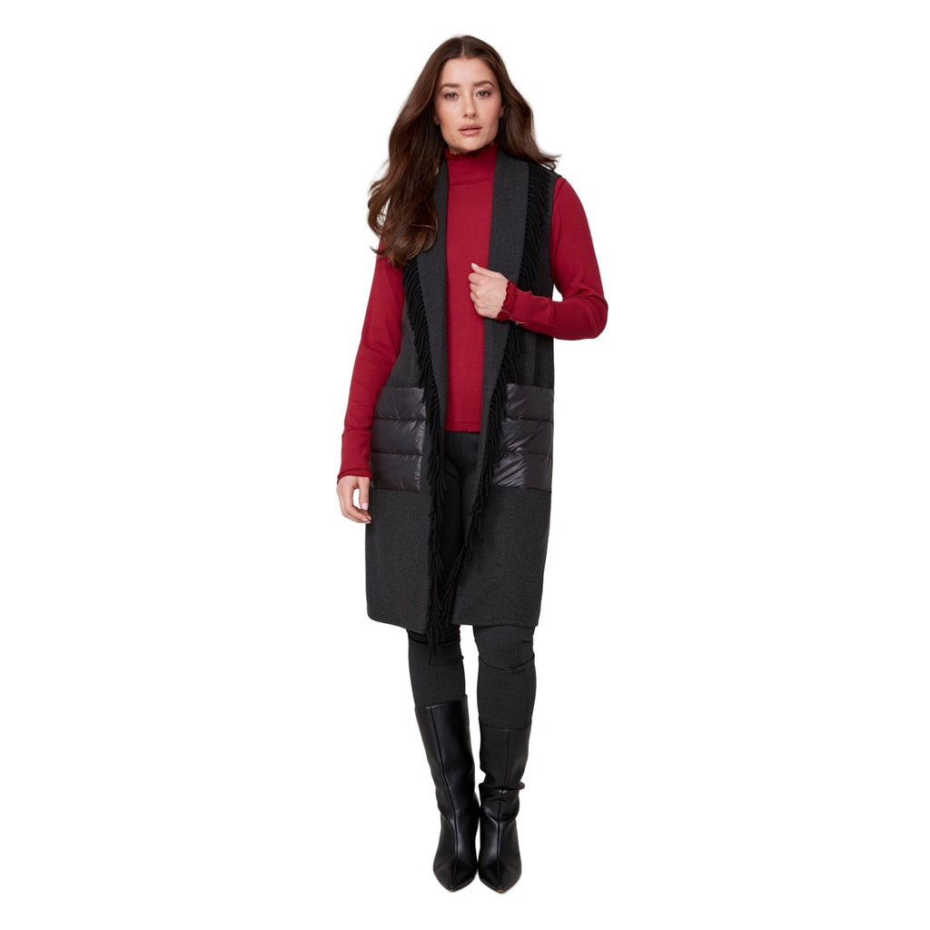 Layer with ease in the Blythe Knit Vest, your new go-to piece for effortless style. Crafted from soft knit fabric with quilted accents, this longline vest offers a sleek silhouette that’s both flattering and versatile.
