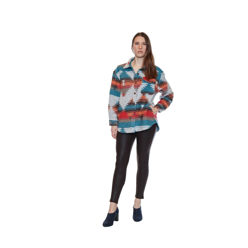 Stay cozy and stylish with the Ensley Aztec Jacket With Pockets, a statement outerwear piece that blends comfort and character. Designed with a bold Aztec-inspired pattern, this jacket features a relaxed fit, button front, and practical side pockets. Made with a soft, warm fabric, it’s perfect for layering over your favorite basics and adding a touch of boho flair to your look.
