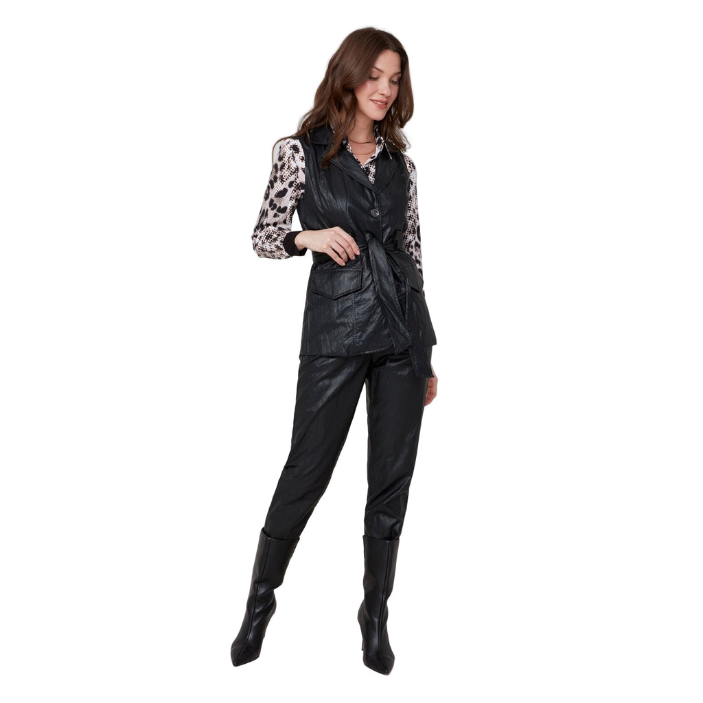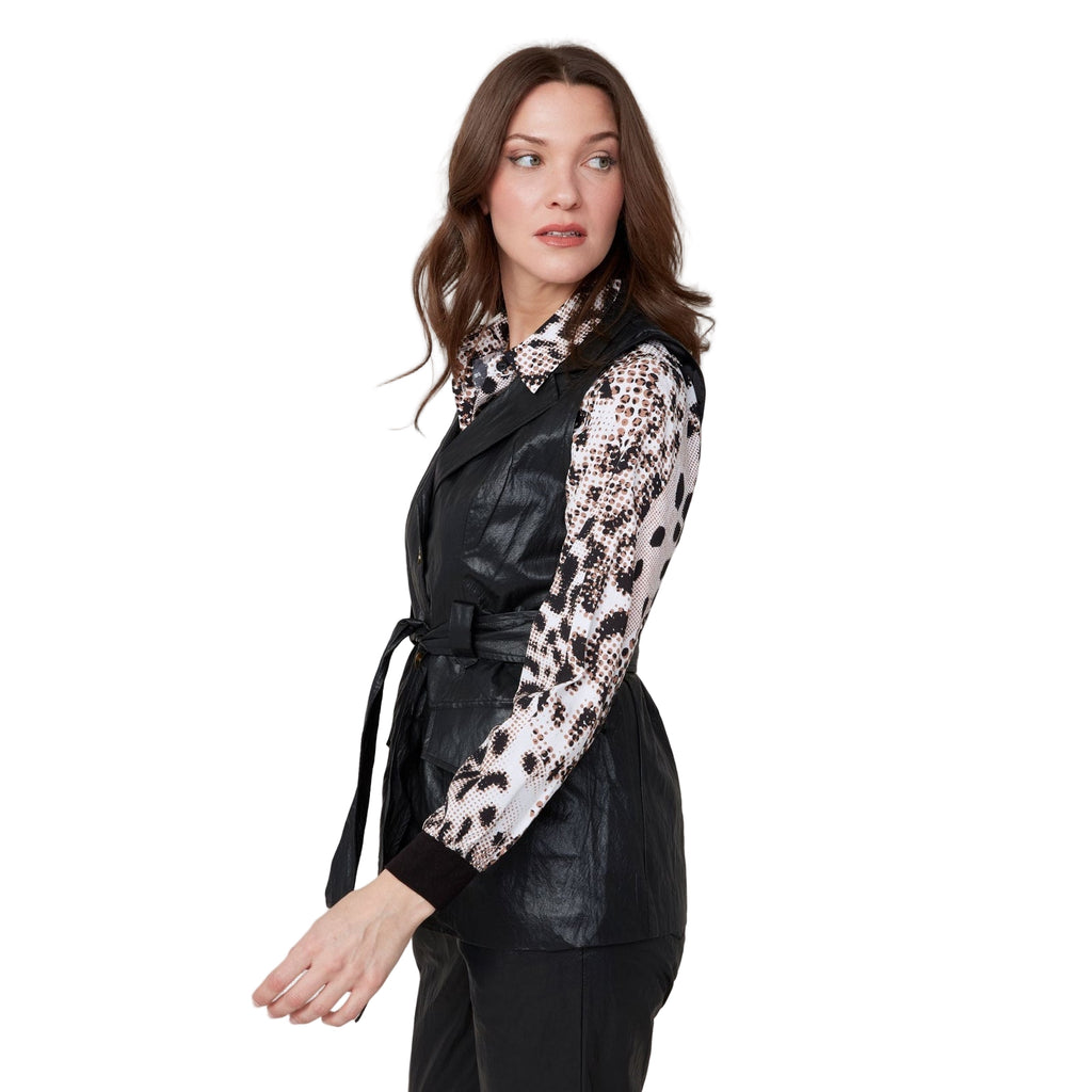The Gina Vest is the ultimate layering piece that balances bold style with everyday wearability. Crafted with a sleek finish and belted waist, it flatters the silhouette while adding a touch of edge to any outfit. Perfect over blouses or sweaters, this vest instantly elevates your look with confidence and modern flair.