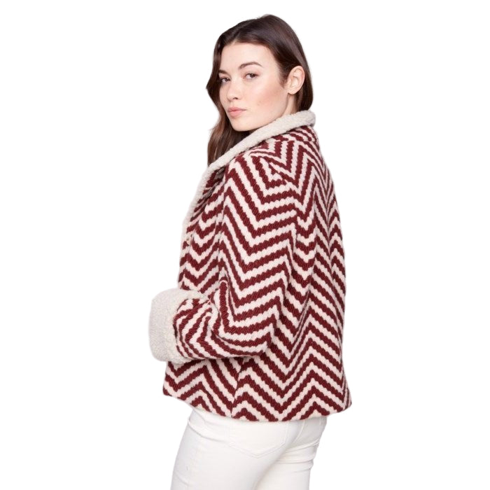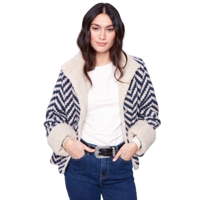 Ira Chevron Bouclé Short Jacket With Sherpa Trim