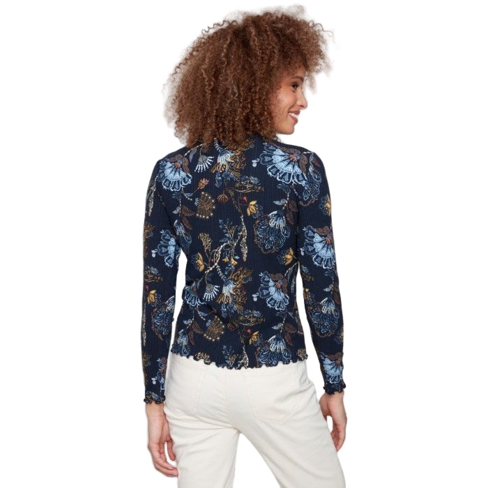 Oana Printed Variegated Mock Neck Long Sleeve Top