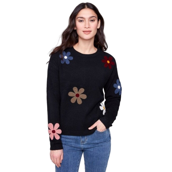 Wrap yourself in cozy charm with the Paige Plush Sweater featuring delightful boucle flowers. Its super plush fabric and relaxed drop shoulder design make it perfect for playful days and comfy nights. Add a touch of whimsy to your wardrobe with this irresistibly soft and stylish sweater.