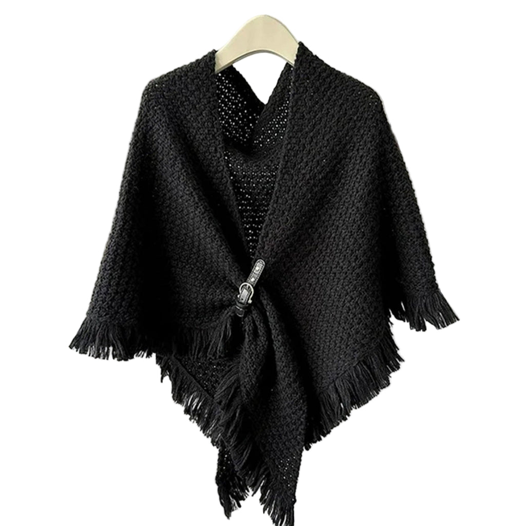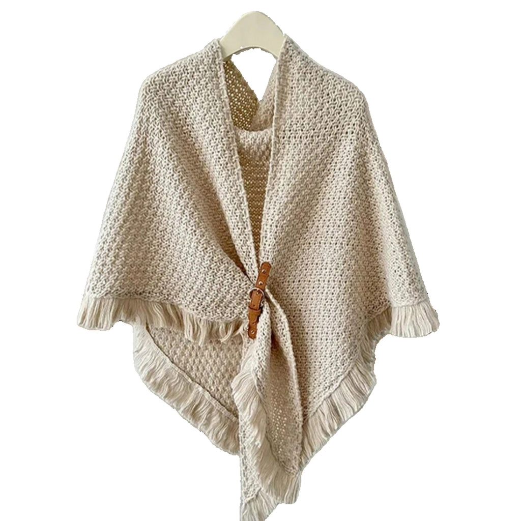 Wrap yourself in cozy charm with the Tanya Knit Cape featuring playful fringe details and a stylish buckle closure. Perfect for adding a touch of whimsy to any outfit, this cape keeps you warm while letting your personality shine through. Whether you're out for a stroll or meeting friends, it’s the perfect blend of comfort and fun flair.