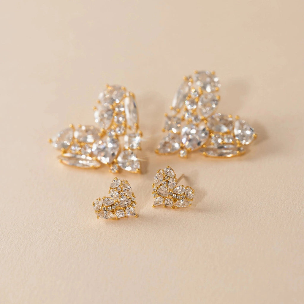 Like the originals, but make it flirty. These petite heart studs bring all the charm of the statement version—vintage-inspired curves, asymmetrical sparkle, and that sculptural feel—just in a more wearable, everyday size. Made with electroplated brass and cubic zirconia so you still get plenty of shine, no effort required.