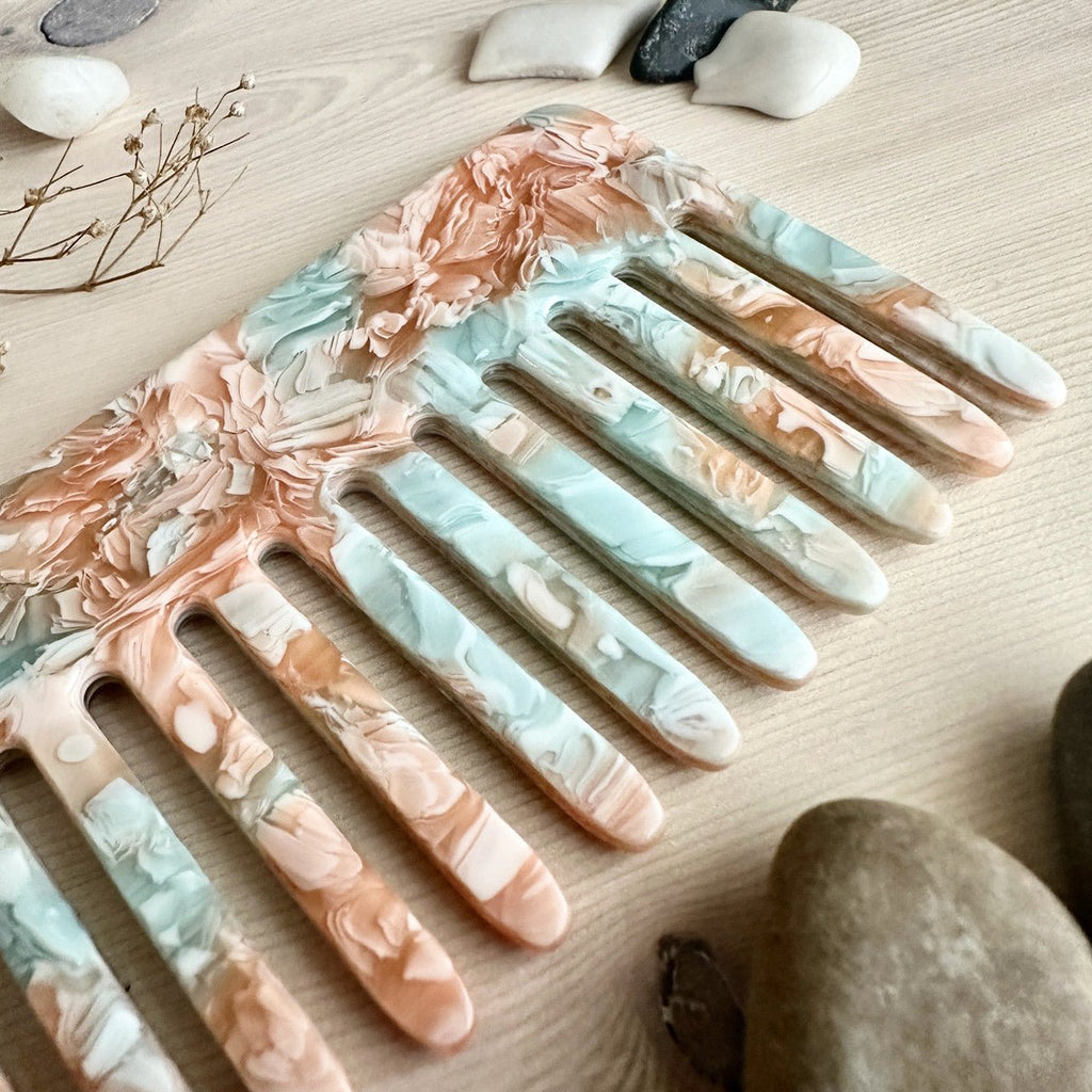 Our Pika and Bear branded hair comb is designed for both style and functionality. Made from high-quality acetate, it offers a smooth, durable finish that glides effortlessly through hair, reducing snagging and breakage and is perfect for all hair types. The elegant design features a classic shape that fits comfortably in your hand. Lightweight and easy to carry, this comb is ideal for on-the-go touch-ups or for use at home. Available in a variety of colors, it adds a touch of sophistication to your hair care routine. Plus, being made of plant-based cellulose acetate, it is a an ecofriendly product that is biodegradable.