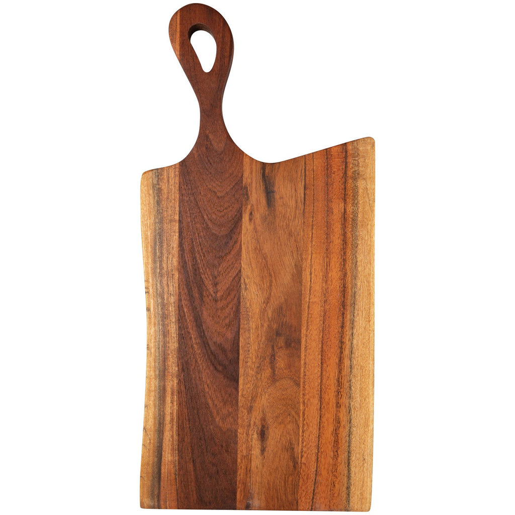 The Rustic Edge acacia wood serving paddle features a unique wood grain pattern, naturally beautiful for entertaining or as décor.