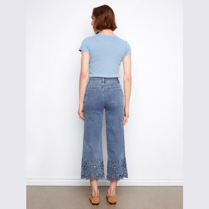 Jayla Wide Leg Jeans With Scalloped Eyelet Hem