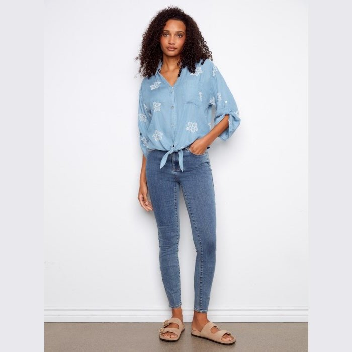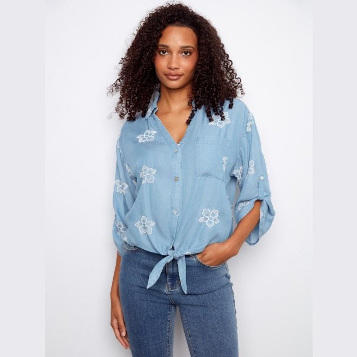 Mya Embroidered Tencel Blouse With Front Tie