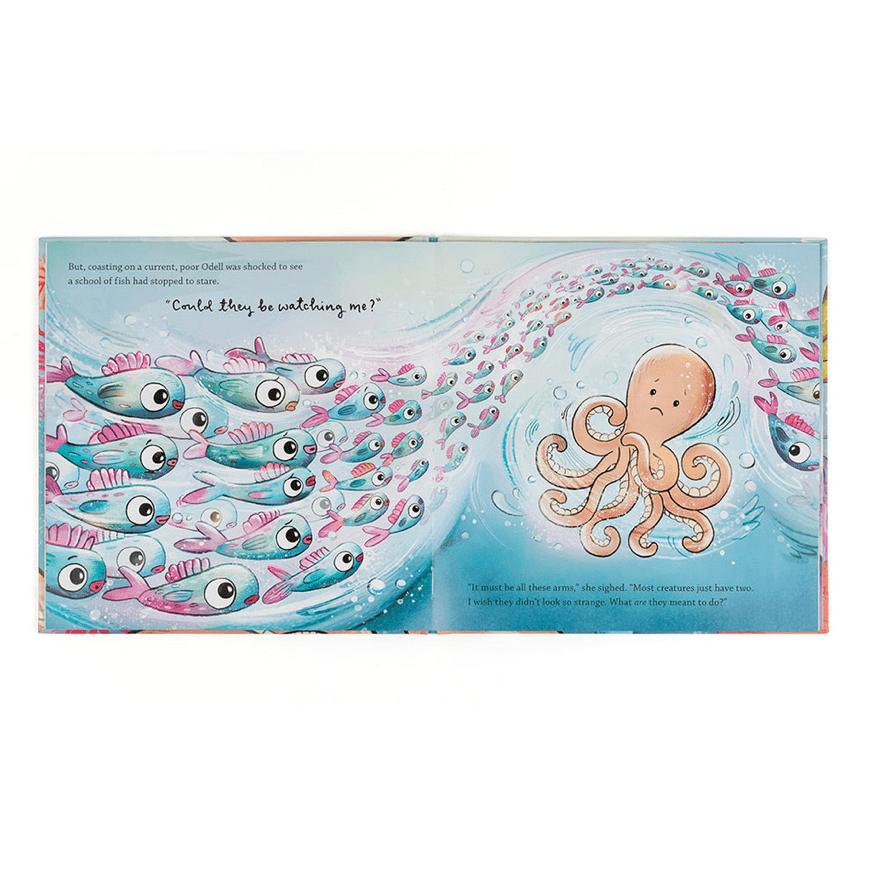 Odell loves being an octopus, spinning and swishing through the ocean with her eight arms waving. But why are those fish staring? Do her eight arms make her look odd? Most other creatures have just two. Join Odell Octopus and her friend Odyssey on a journey of discovery about loving what makes you… YOU! A funny and vibrant picture book about self-acceptance and celebrating what makes each of us unique.